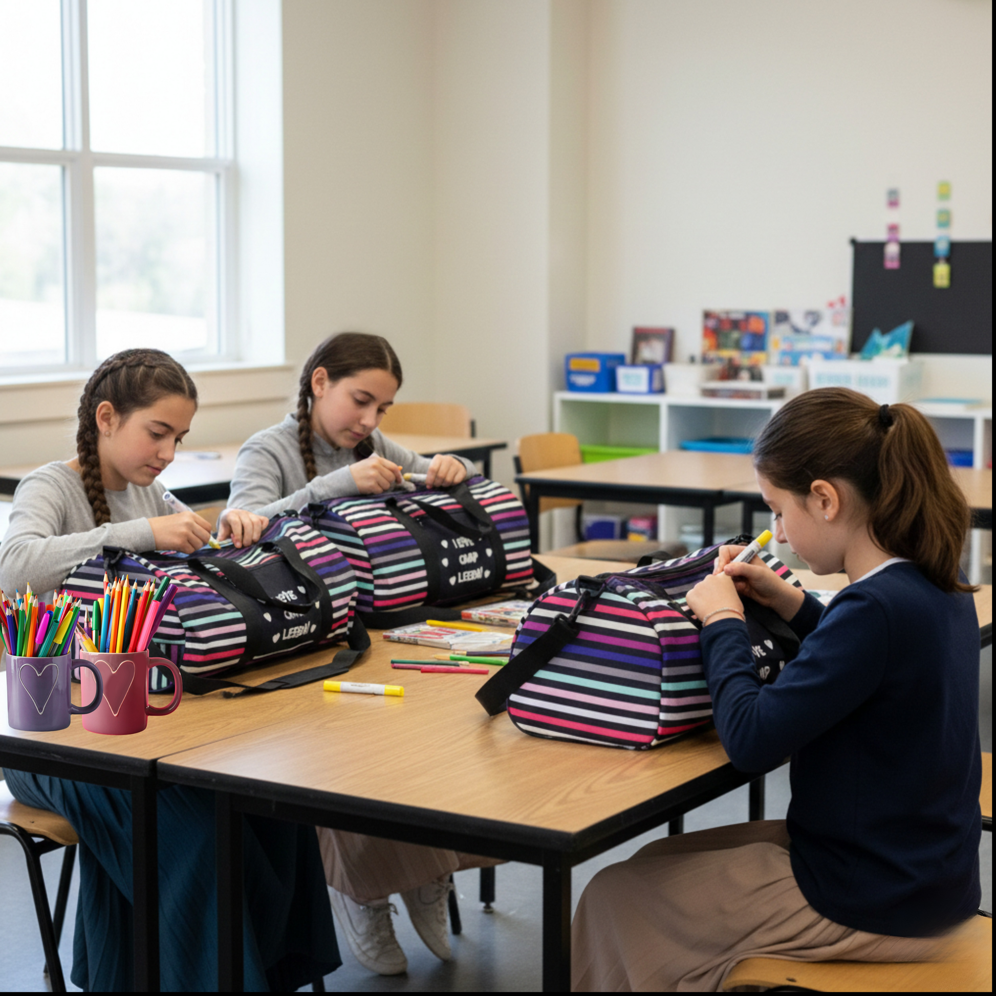 Pack your creativity and take it on the go! This canvas duffle bag is ready for your personal touch—color it in with fabric or permanent markers (not included). Designed with two sturdy handles and a long shoulder strap, it’s perfect for overnights, trips, or everyday adventures. Create the fabric from scratch with any design you want. Add your logo for a fun and functional promotional item!